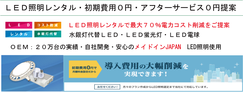 LED照明レンタル バナー|医療機器の設計・開発(カスタム品)・量産・OEM製造専門